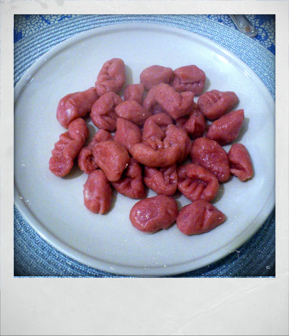 Les gnocchis à la betterave, et les betteraves caramélisées au balsamique.
