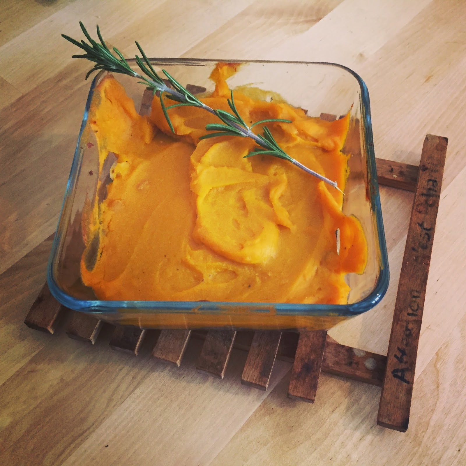 Pour faire la purée : faire cuire la demi courge (épluchée de préférence) et les patates coupées en petits carrés. Cuisson : 20min dans l’eau bouillante