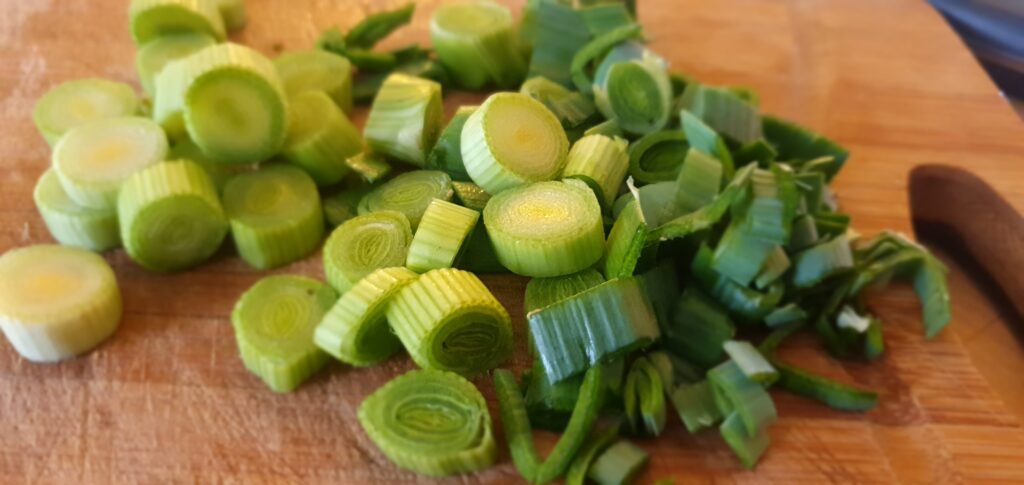 - Commencez par laver les tiges d’ail, enlevez les morceaux abimĂ©s ou flĂ©tris et Ă©mincez-les trĂšs finement.