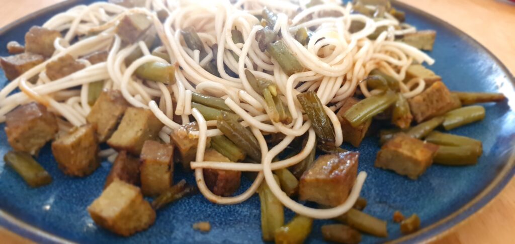 - 🍜 Nouilles sautées haricots verts et tofuC’est un petit plat rapide et délicieux que je fais souvent, avec des variantes sur les nouilles, les légumes, le tofu. Ce qui ne varie jamais, c’est la sauce, qui… Lire la suite : 🍜 Nouilles sautées haricots verts et tofu